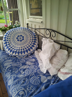 En fin och lugn midsommarafton precis som vi vill ha det. När mamma åkt hem la jag mig på soffan ute i glasverandan (min favoritplats) och fortsatte läsa i min deckare "Det fjärde offret" av Mari Jungsted. Maken kollar på foooooootboooool.